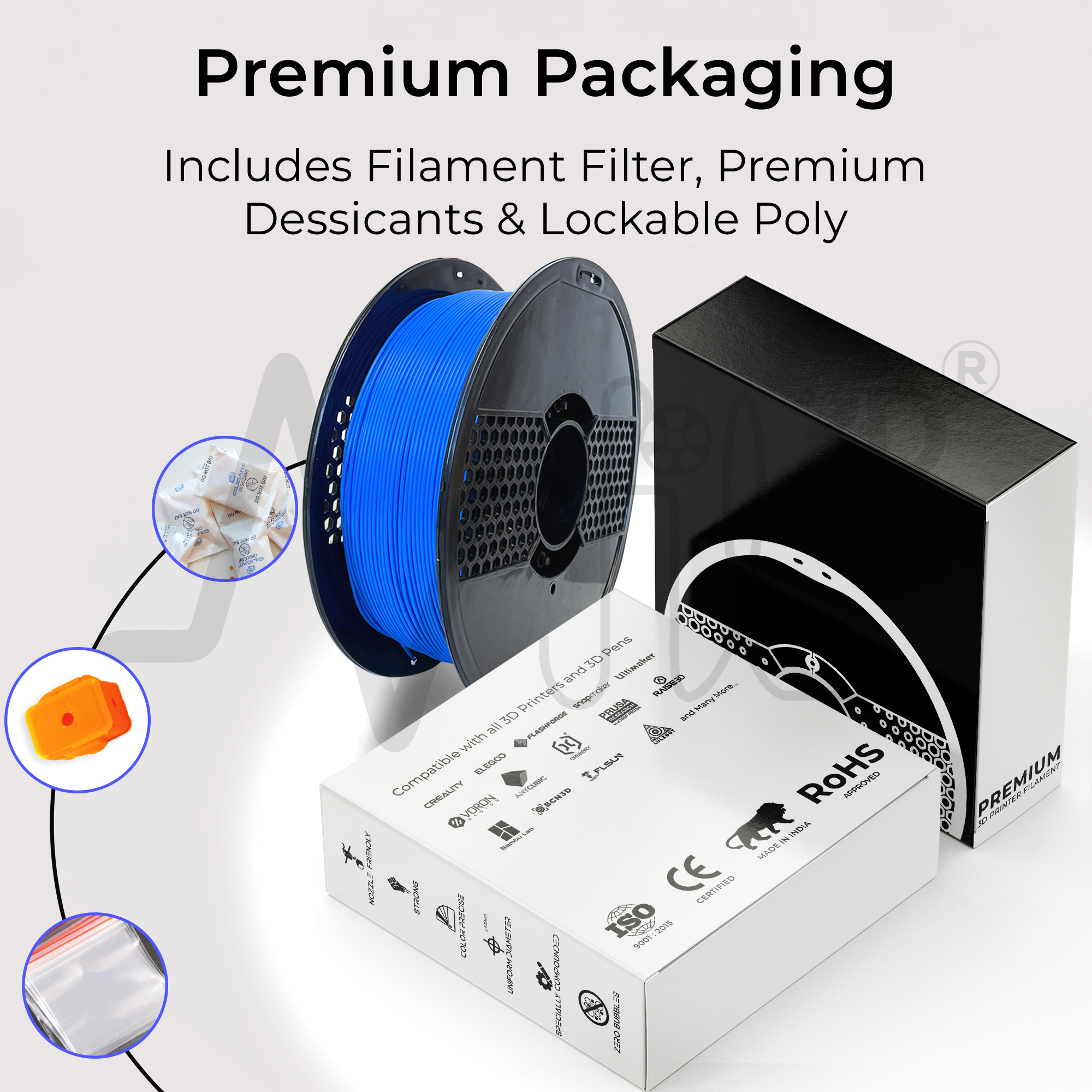 • Premium 3D Printer Filament – (1000g Filament + 250g Spool) – Total Weight 1.6kg (With Packaging)