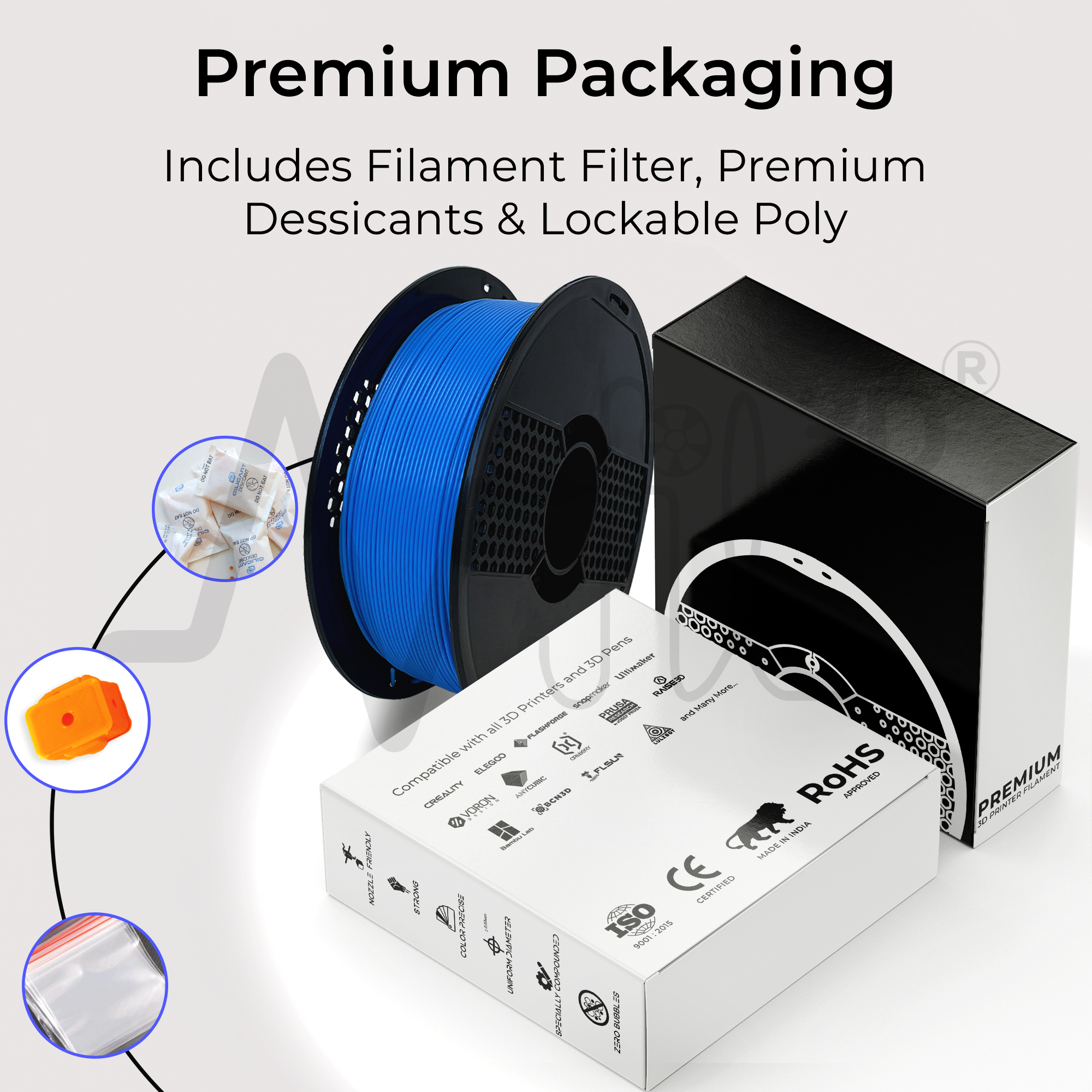- Premium 3D Printer Filament – (1000g Filament + 250g Spool) – Total Weight 1.6kg (With Packaging)