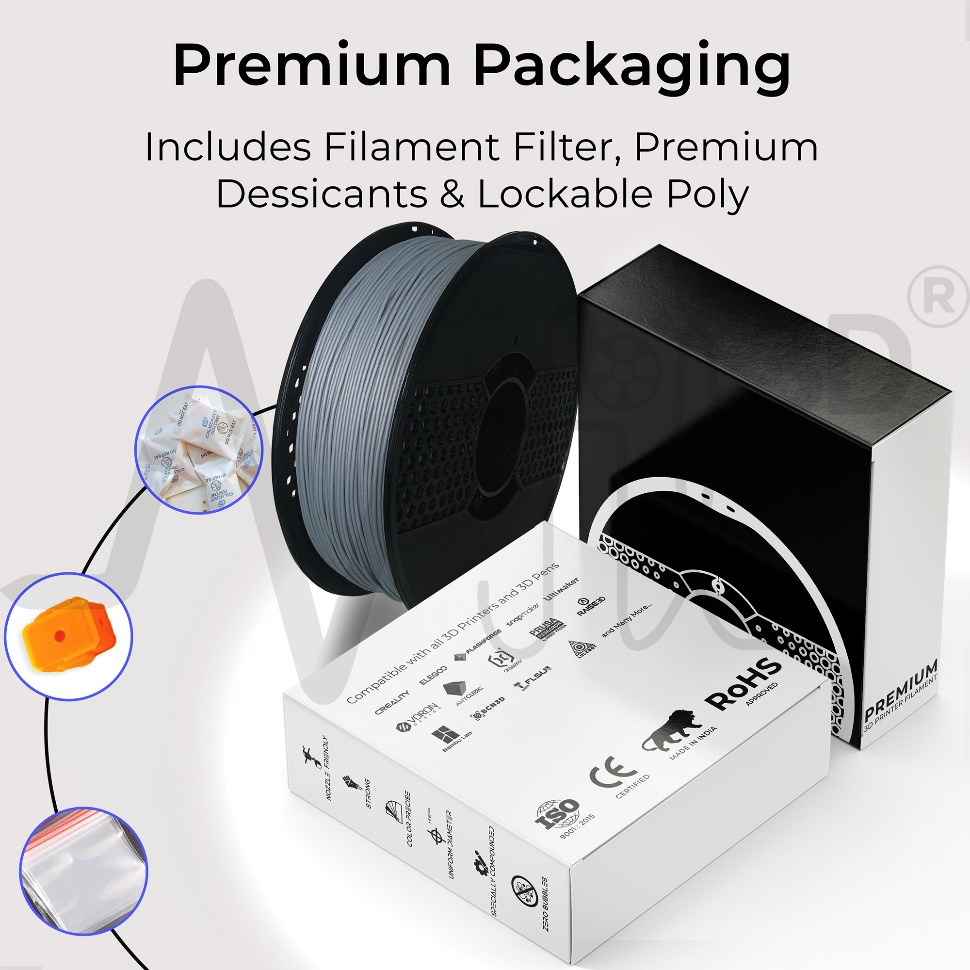 • Premium 3D Printer Filament – (1000g Filament + 250g Spool) – Total Weight 1.6kg (With Packaging)