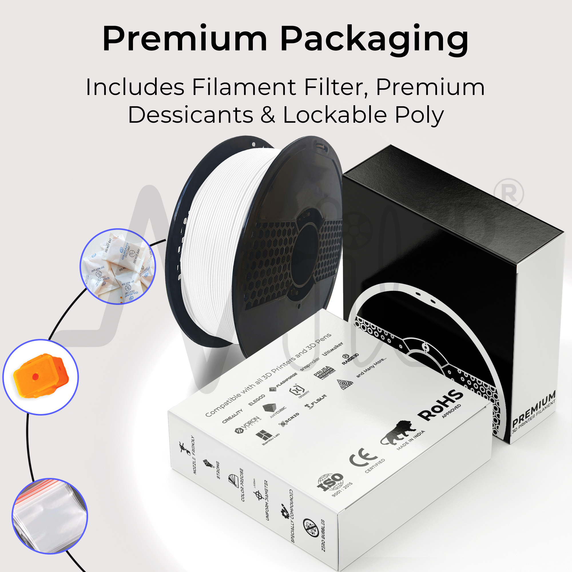 • Premium 3D Printer Filament – (1000g Filament + 250g Spool) – Total Weight 1.6kg (With Packaging)